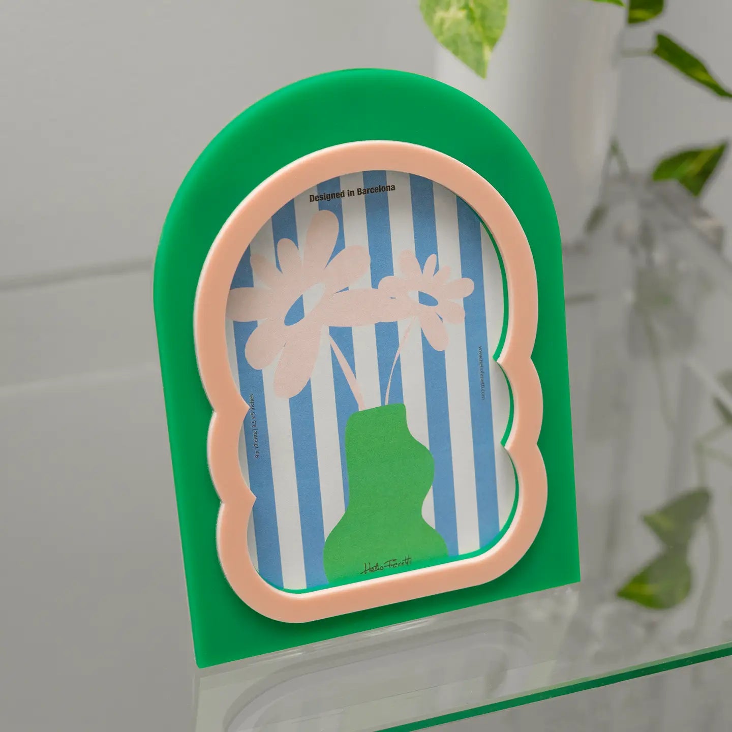 Dekorativer Rahmen mit einem Vertex-Design in sanftem Grün. Verleiht jedem Raum eine moderne und natürliche Note. Eine großartige Wahl für Büros, Wohnbereiche oder persönliche Schreibtische.