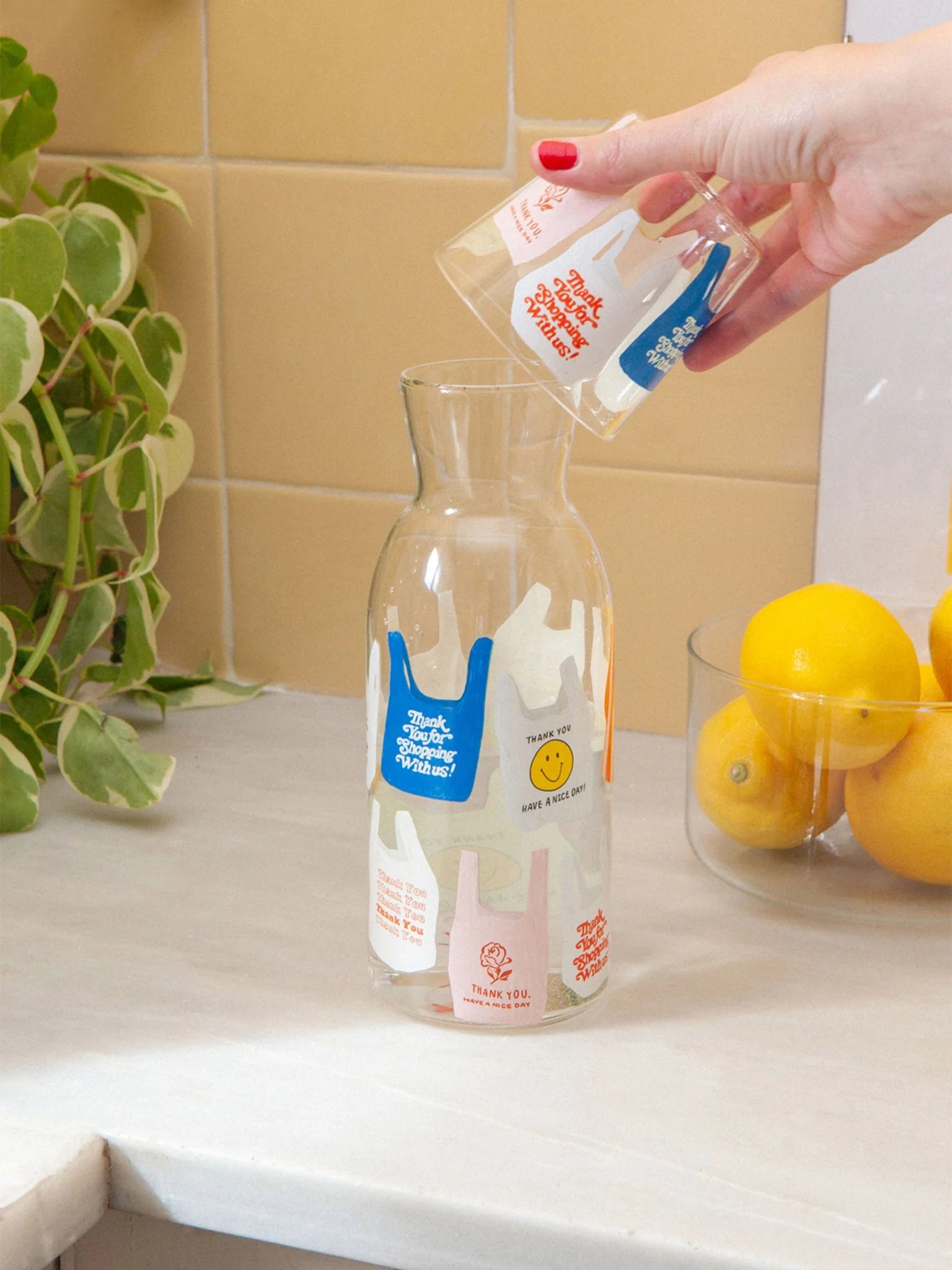 Einmachglas-Set mit Illustrationen von Einkaufstaschen, das Sie in die schönen Erinnerungen an Nachbarschaftsläden und geliebte Leckereien vergangener Zeiten zurückversetzt.