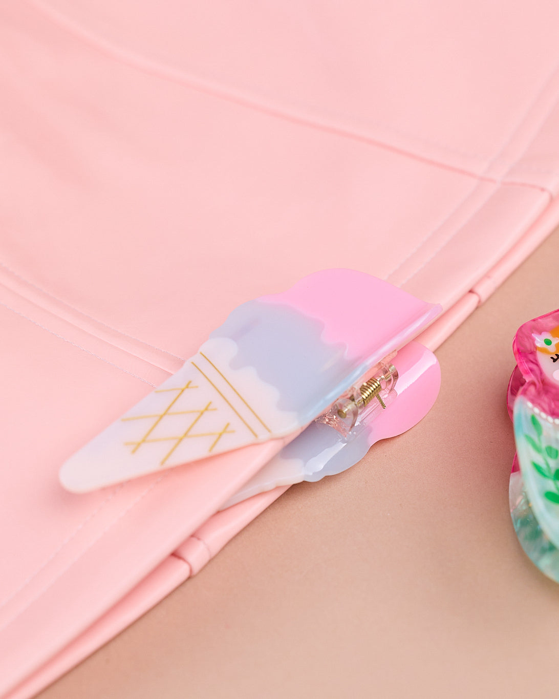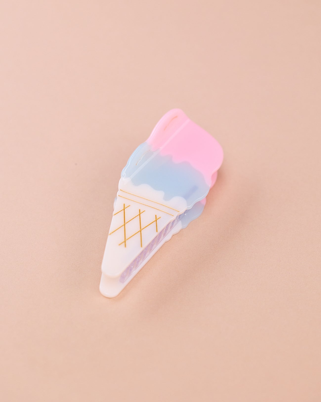 Diese verspielte Haarspange im Eis-Design bringt sofort Sommerlaune in dein Styling. Die zarten Pastellfarben in Rosa, Blau und Creme erinnern an eine Kugel Eis an warmen Tagen und machen die Spange zu einem echten Hingucker. Gleichzeitig hält sie dein Haar zuverlässig im Alltag und ist angenehm leicht zu tragen.
