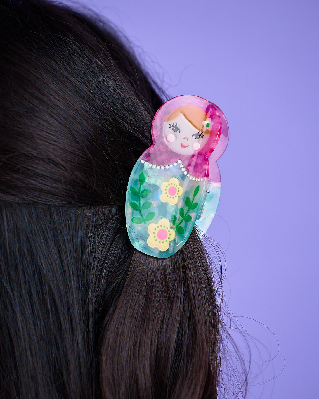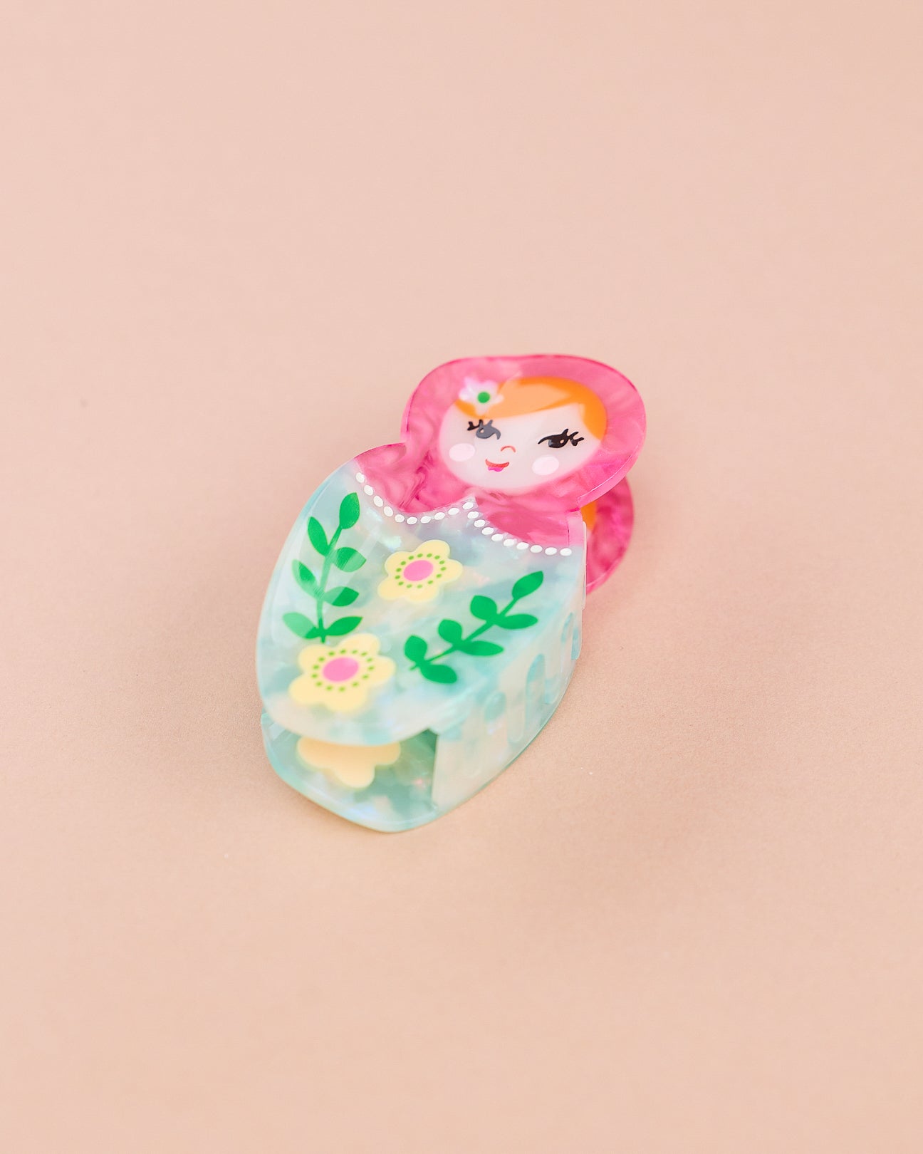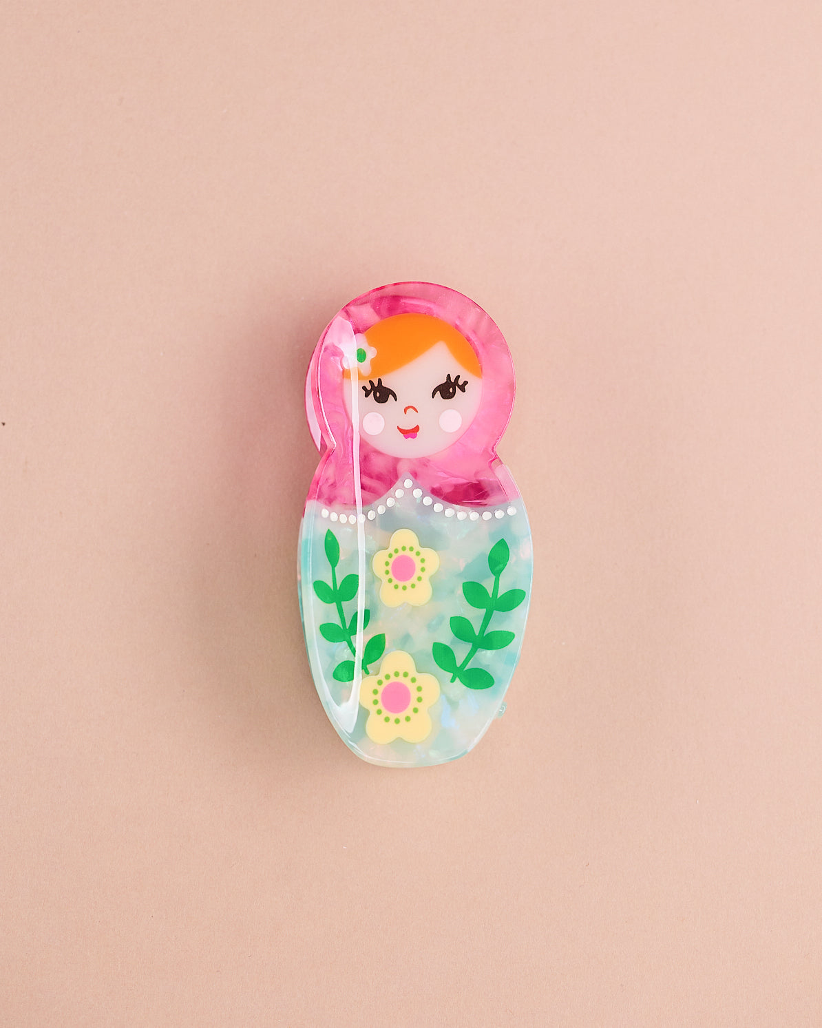 Diese verspielte Haarspange im Matroschka-Design bringt einen liebevollen, farbenfrohen Akzent in dein Styling. Die grüne Farbwelt in Kombination mit den floralen Details macht die Spange zu einem besonderen Hingucker. Gleichzeitig hält sie dein Haar zuverlässig im Alltag und ist angenehm leicht zu tragen.
