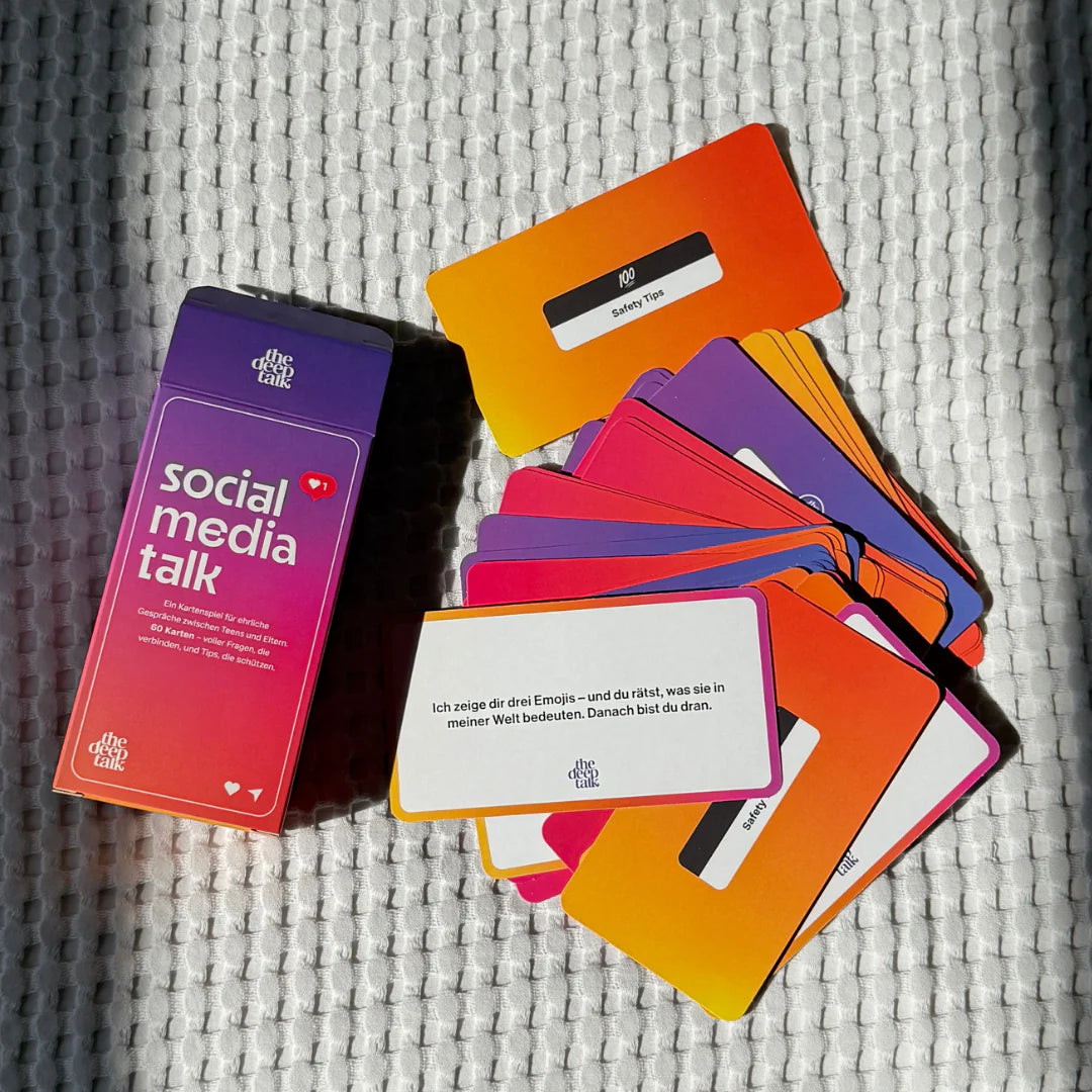 60 Karten, die Eltern und Teens helfen, offener über Social Media zu sprechen. Diese Edition bringt generationsübergreifende Perspektiven zusammen – ehrlich, empathisch und auf Augenhöhe.