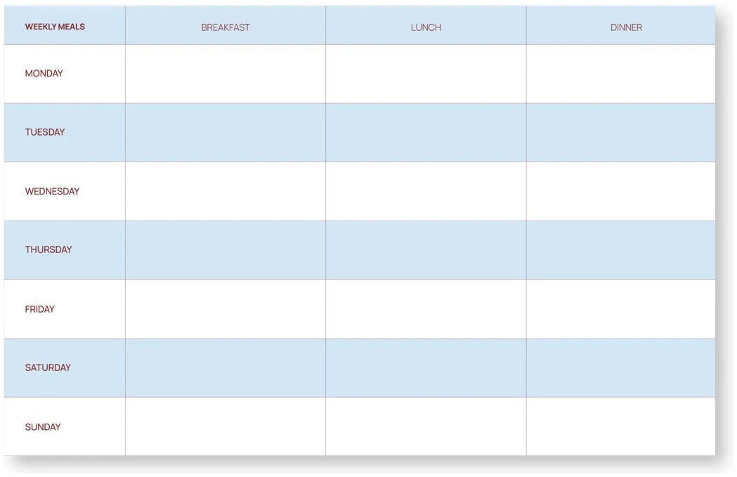Keine täglichen Fragen mehr darüber, was man essen soll. Dieser Planer wird Ihre Haushaltsführung auf ein neues Niveau heben: organisiert und natürlich sehr geschmackvoll