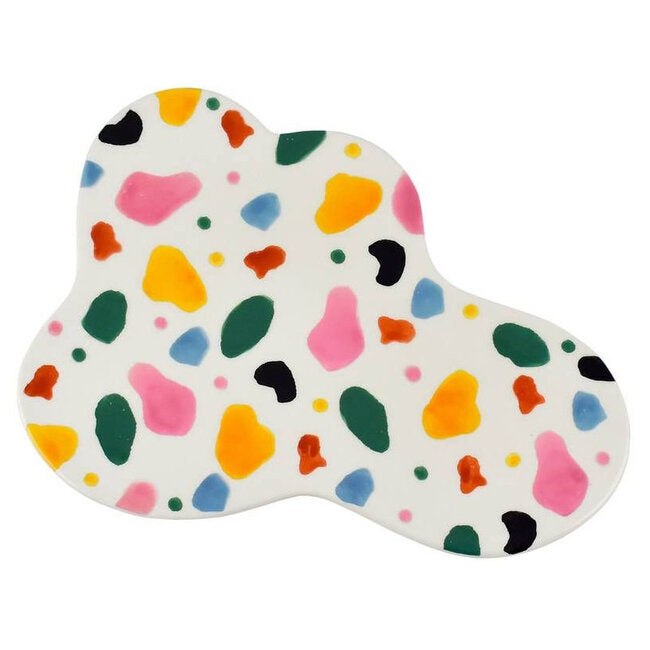 Bring a splash of Spanish sunshine into your home with the organic ceramic Sergio tray, featuring the lively Formas Abstractas pattern. Its playful curves and sunny hues of pink, yellow, and green make it a true work of art. Whether used as a serving tray or a decorative piece, it radiates positive energy and creativity.